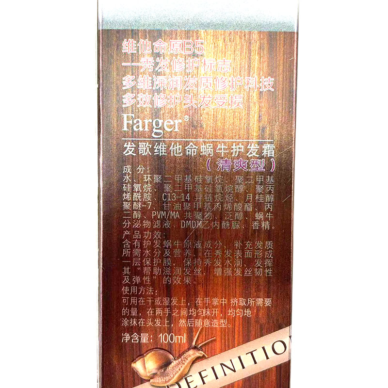 商品名称:发歌维他命蜗牛护发霜修护霜角元素100ml烫染后受损修护