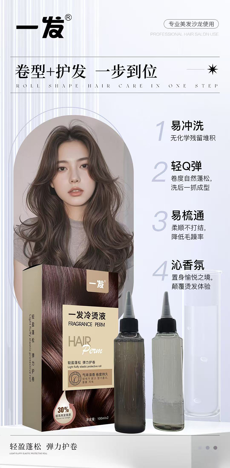 上新/一发·蓖麻油塑形烫发液100mlX2乳状软化·冷烫操作·热烫效果